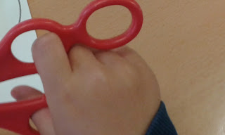 Dependiendo de la destreza, hay quien necesita más ayuda. Por lo tanto, en principio, utilizamos tijeras especiales con doble agujero para iniciarlos.
